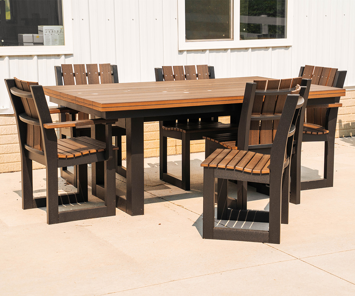 - The Columbia-style Deep Seating series with cushions. These poly lumber pieces are